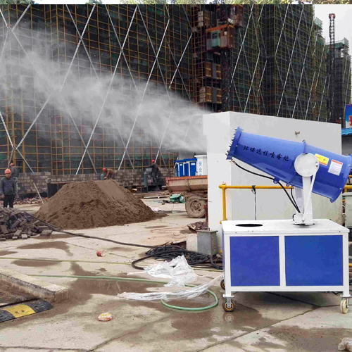 对容易引起尘埃的堆场喷水除尘时,喷出的雾粒细小、与飘起的尘埃接触时,形成一种潮湿雾状体,能快速将尘埃抑制降沉;